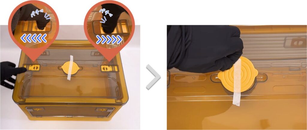 フタをロックしてから、マスキングテープをはがします。