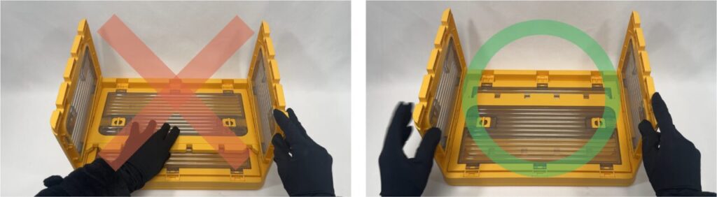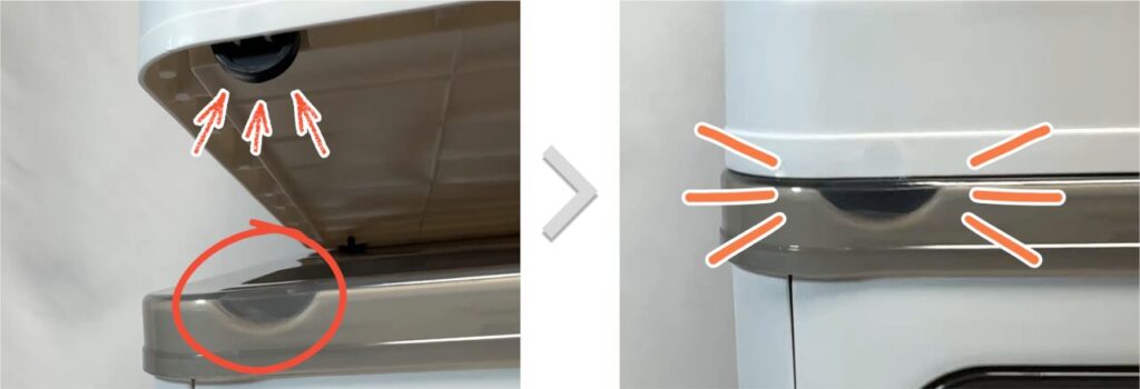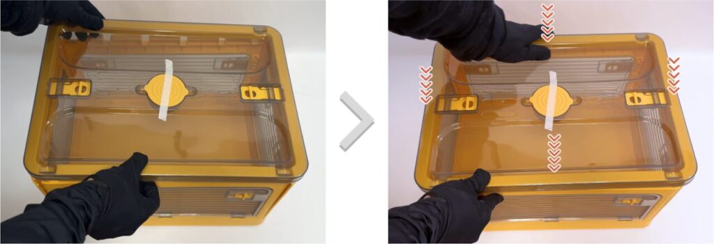 上から力を加えて、フタをボックスに固定します。