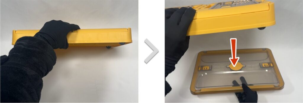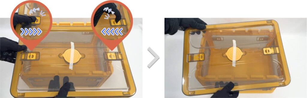 フタのロックを解除し、組み立てたボックスに乗せます。