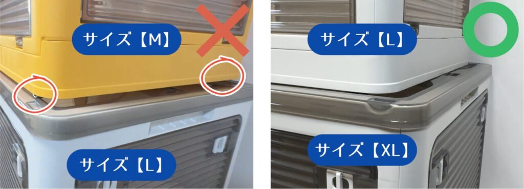 • サイズの組み合わせによっては、うまく積み重ねができない