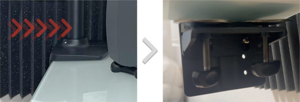 机の厚みによって、クランプの取り付け位置の調整が必要になります。