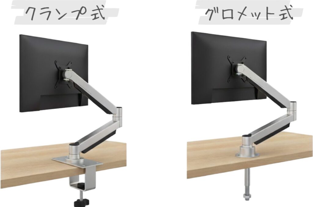 机に取り付ける方法には「クランプ方式」と「グロメット方式」があります。