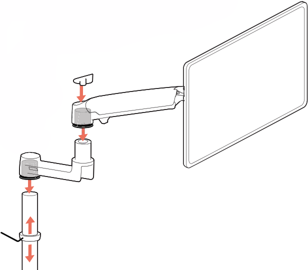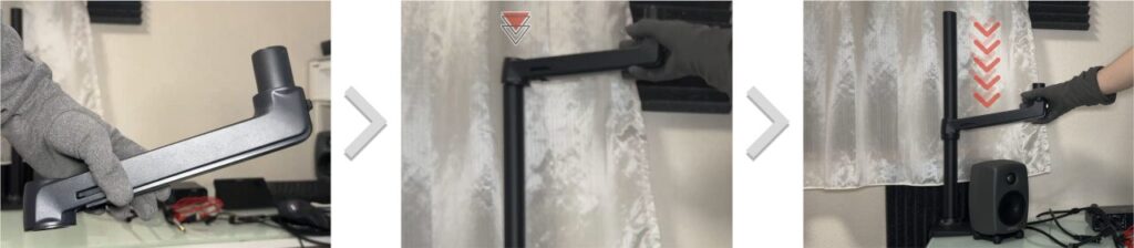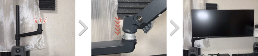 エクステンションの先端にモニターを取り付けたアームを取り付けます。