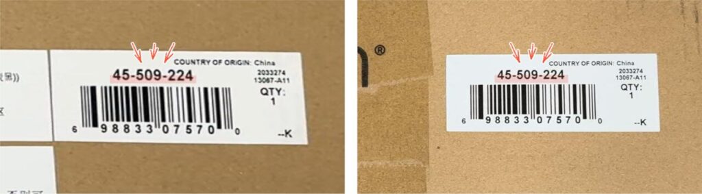 箱の正面や右側に型番が記載されているので、開封前に購入した商品かどうか確認することをオススメします。