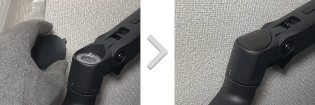 エクステンションとモニターの接合部にキャップをはめ込みます。