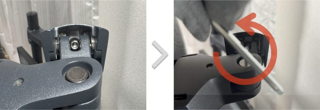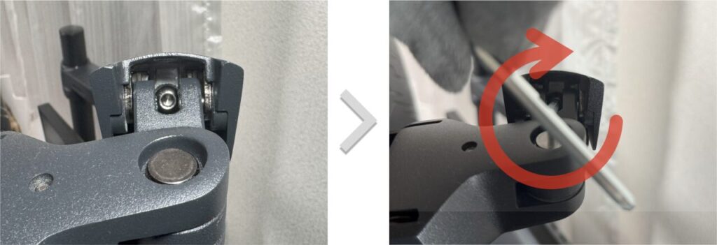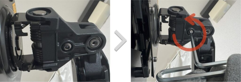 アーム先端の裏にあるネジを六角レンチ(大)でユルめます。