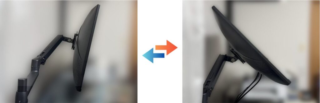 さらにモニターの下向き角度が「最大5°」までしか調整できないため、モニターを上下配置した際に、上側のモニターを正面から見ることができません。