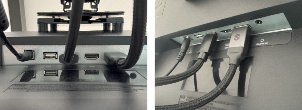モニターを前に出して、ケーブルを差しやすい位置に移動します。