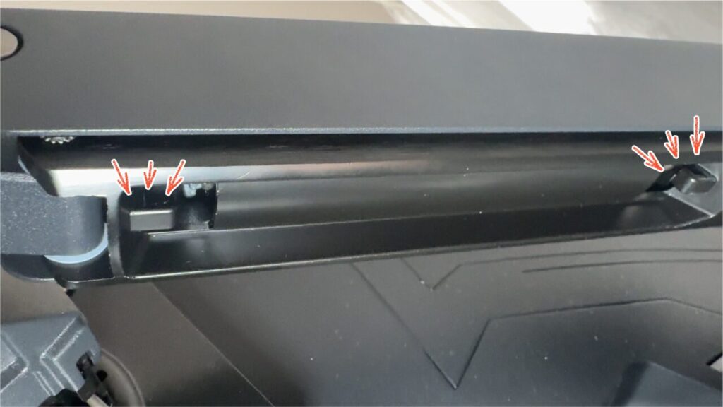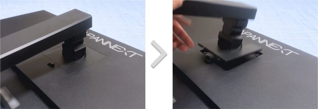 取り外しも簡単で、専用ブラケットのレバーを押し込んだままモニターを引き上げると取り外せます。