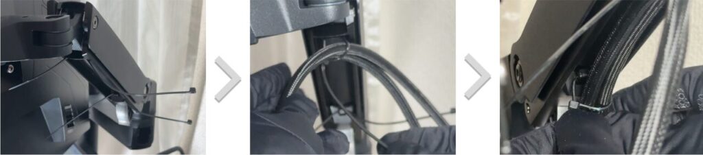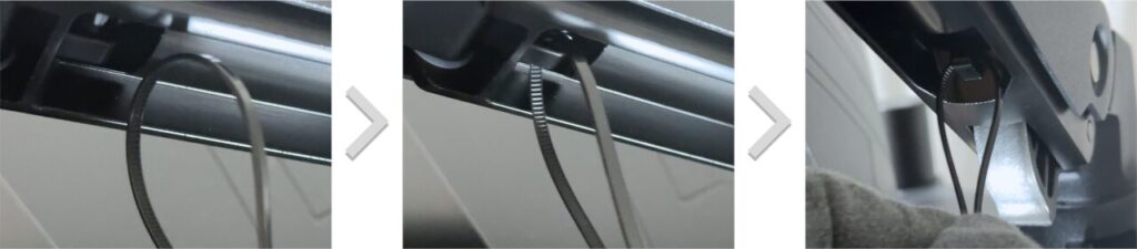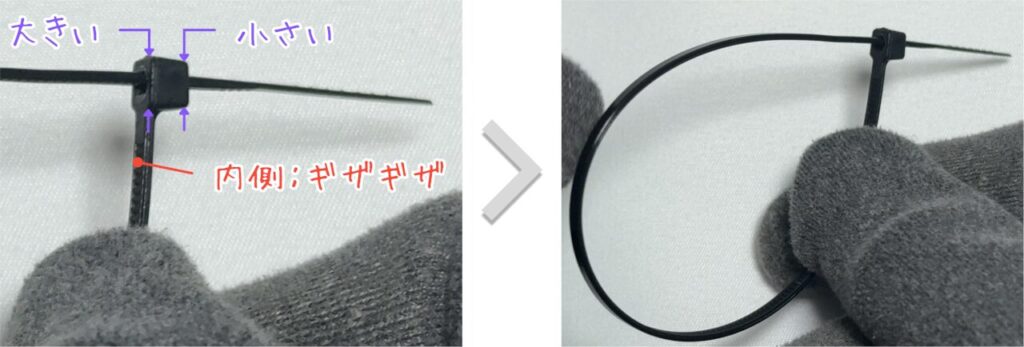 結束バンドは向きがあるので注意してください。間違うとすぐに外れてしまいます。