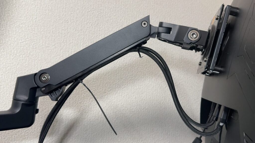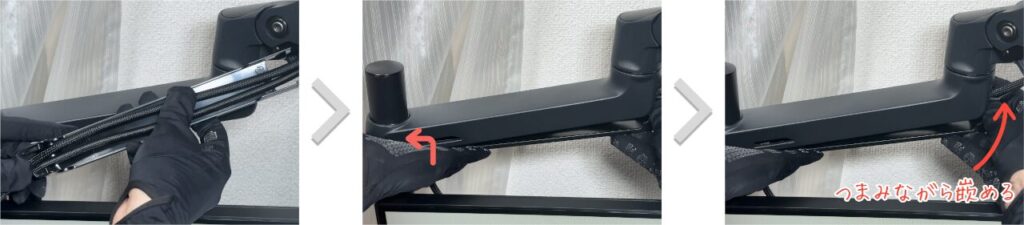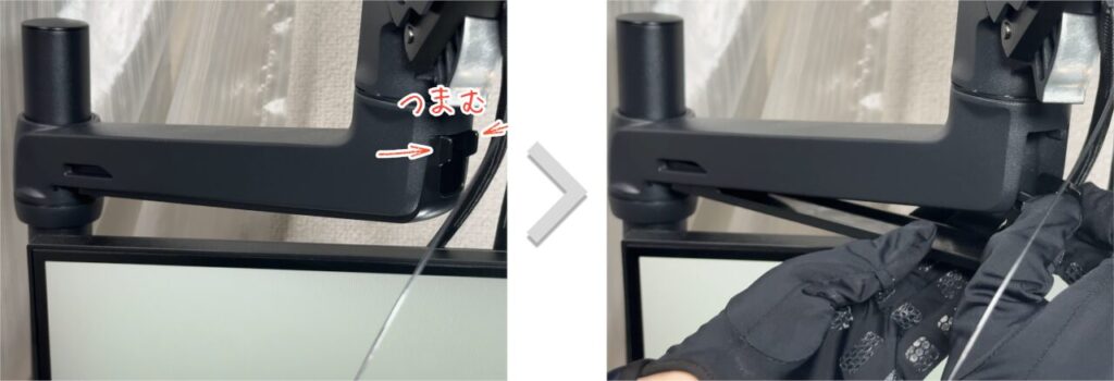アームの裏側に、ケーブル固定用のフックが用意されています。