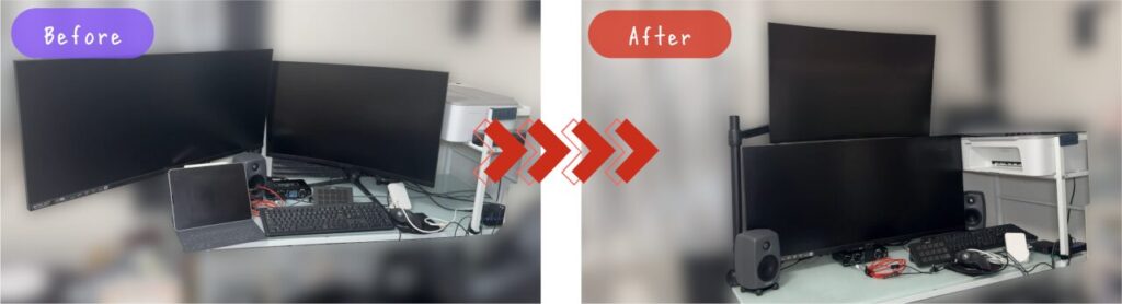 他に物が置けるようになりますし、デスク作業がストレスフリーになりますよ!