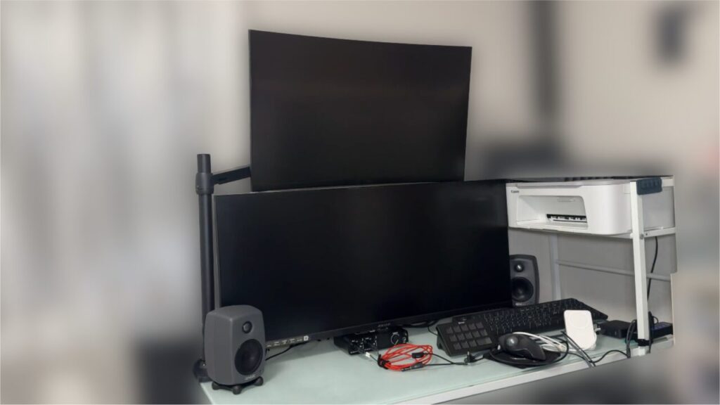 もし置けたとしても、今度はモニターのスタンドが邪魔で、デスクスペースを圧迫して窮屈な思いをした経験はないでしょうか?