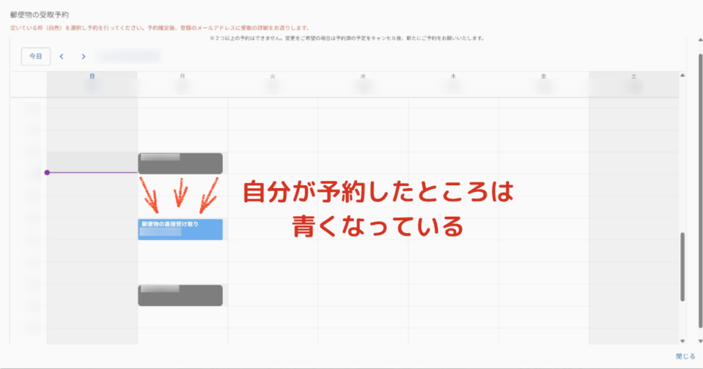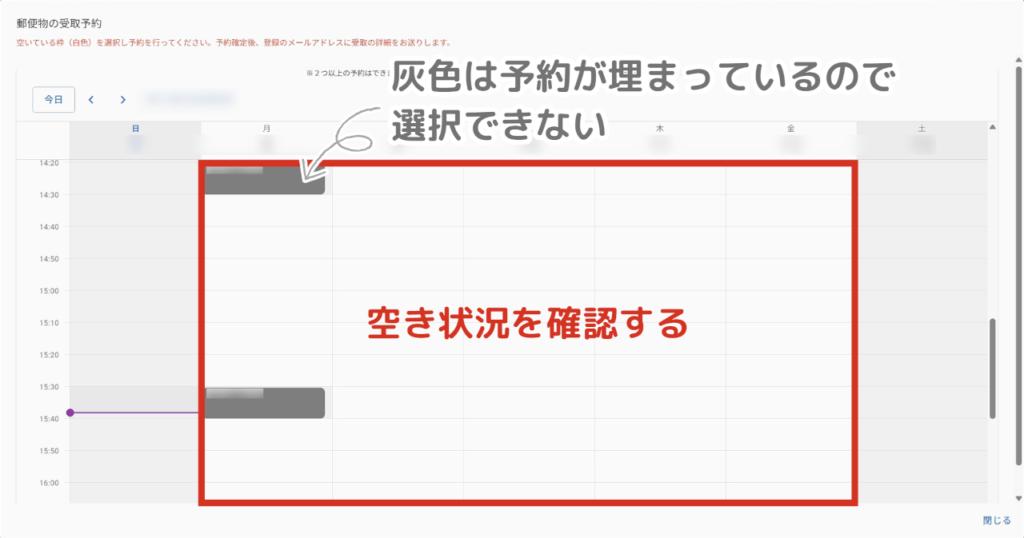 予約表が表示されるので、「灰色以外の場所」を確認してください。
