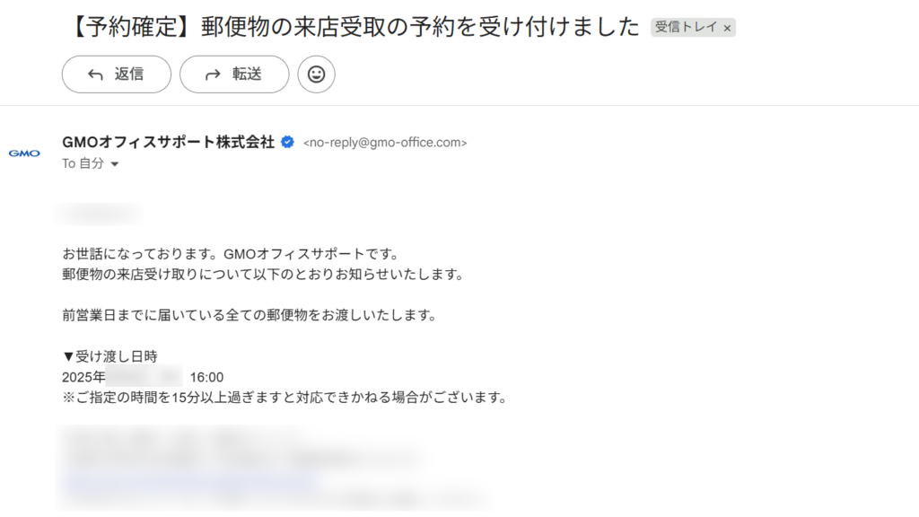 直接契約しているGMOオフィスに訪問し、荷物を受取るサービスです。