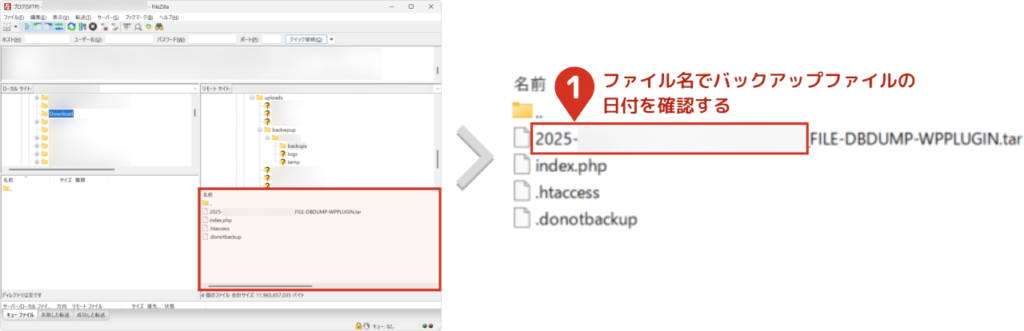 - 5バックアップファイルをサーバーにアップロードする以下の図にしたがって、ファイルをアップロードしてください。