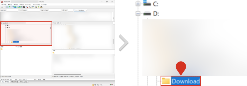 もしFTPクライアントソフトをインストールされてない方は、下の記事にインストール方法をまとめておりますので、ご参考にしてください。