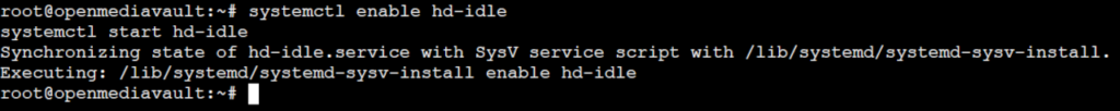 systemctl enable hd-idle systemctl start hd-idle以下のような実行結果が表示されれば、OKです。