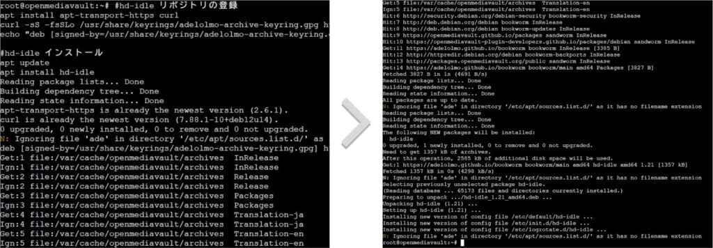 #hd-idle リポジトリの登録 apt install apt-transport-https curl curl -sS -fsSLo /usr/share/keyrings/adelolmo-archive-keyring.gpg https://adelolmo.github.io/andoni.delolmo@gmail.com.gpg echo "deb [signed-by=/usr/share/keyrings/adelolmo-archive-keyring.gpg] https://adelolmo.github.io/$(lsb_release -cs) $(lsb_release -cs) main" | sudo tee /etc/apt/sources.list.d/adelolmo.github.io.list #hd-idle インストール apt update apt install hd-idle