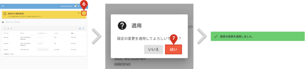 保留中の構成変更のチェックボタンを選択し、適用してください。