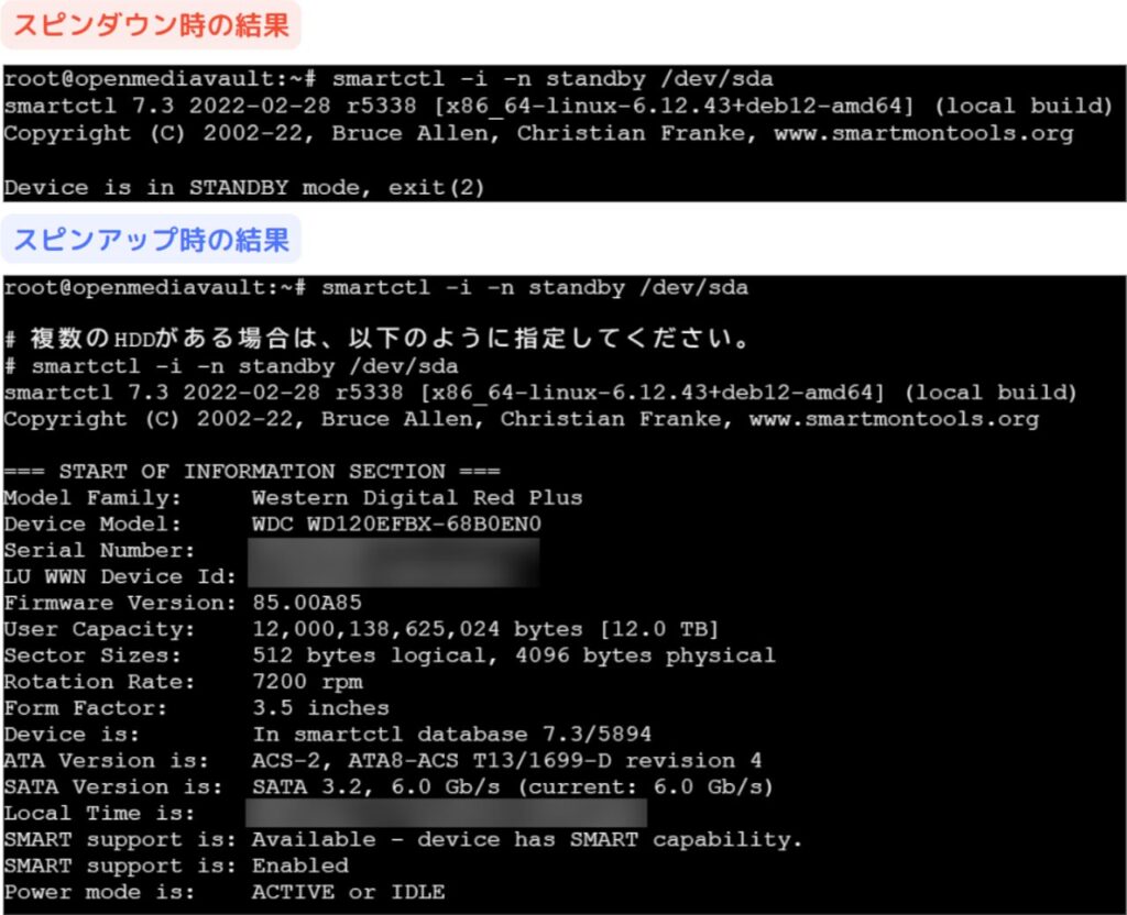 smartctl -i -n standby /dev/sda # 複数のHDDがある場合は、以下のように指定してください。 # smartctl -i -n standby /dev/sda # smartctl -i -n standby /dev/sdb