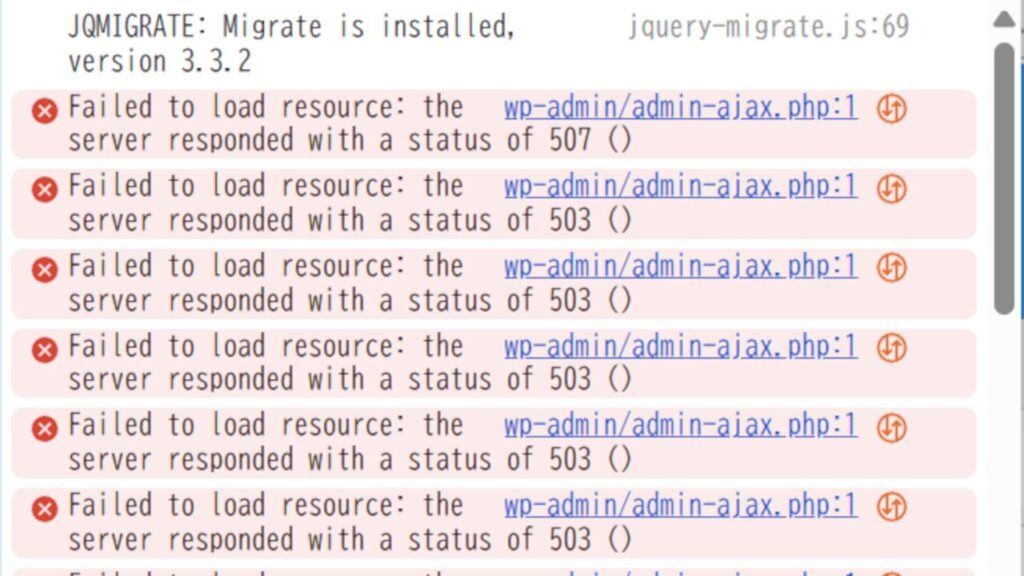 もし以下のような「503」や「507」エラーが発生している場合、サーバー制限に引っかかっている可能性が高いので、次のパラメータの調整が必要になります。