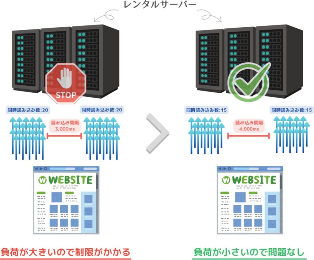 エラーの発生原因は、レンタルサーバーがダウンしないようにサイトごとにアクセス制限を設けているからです。図のようなイメージとなります。
