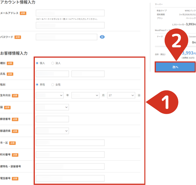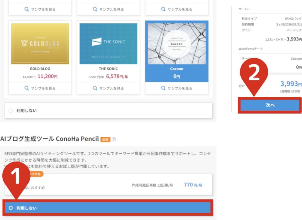 はじめにサーバーの契約をします。世の中には色々なレンタルサーバーがありますが、ここでは値段が安くサイトの回線速度No.1のConoHa Wingで解説を進めます。