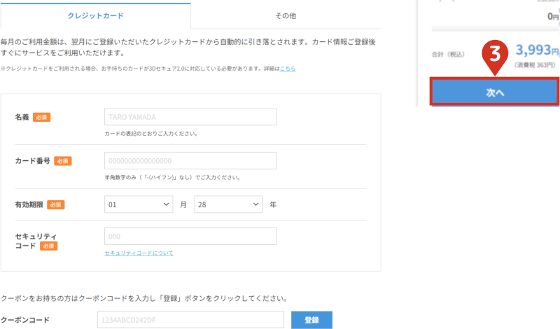 後からいつでも変更可能なため、いまは適当に入力しても問題ございません。