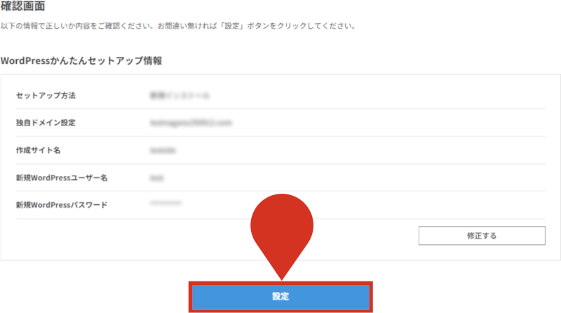 WordPress:自分のサイトの設定や記事の作成 - 16内容を確認後、設定を完了する