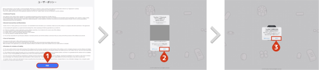 ユーザーポリシーとBluetoothのデバイス探索を許可します。