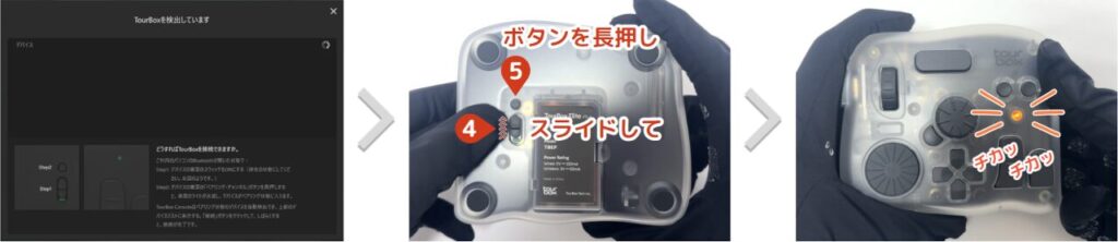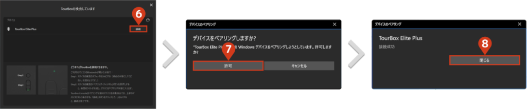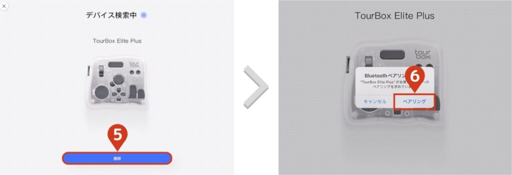 しばらくすると「TourBox Elite Plus」と表示されるので接続をクリックします。