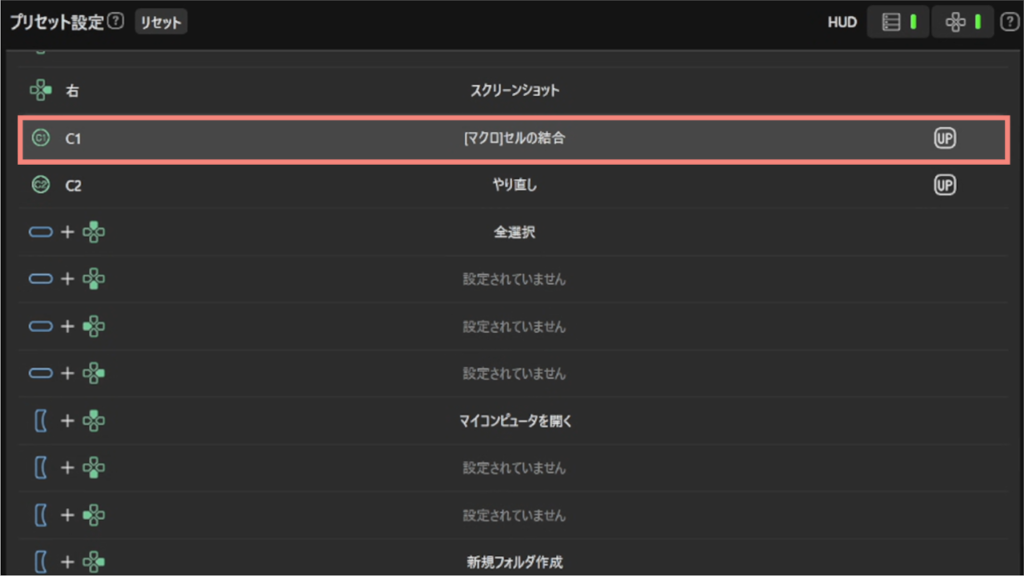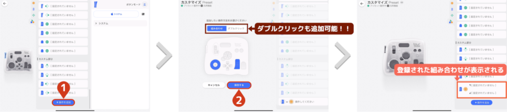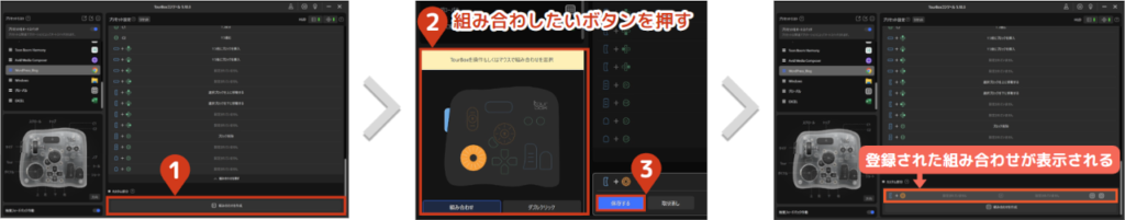 ボタンの「単独押し」や「複数ボタンの同時押し」に対する動作を割り当てていきます。