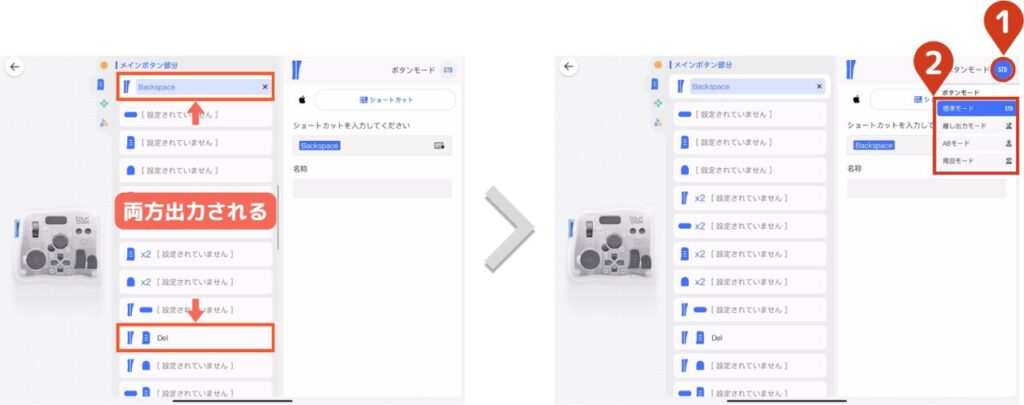 PCと同じくボタンの出力タイミングが4種類も用意されているので、出力タイミングをずらすことで、この問題を回避できます。