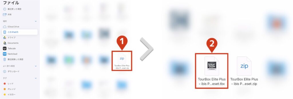 ダウンロードファイルをタップすると、何の表示もなく解凍されます。