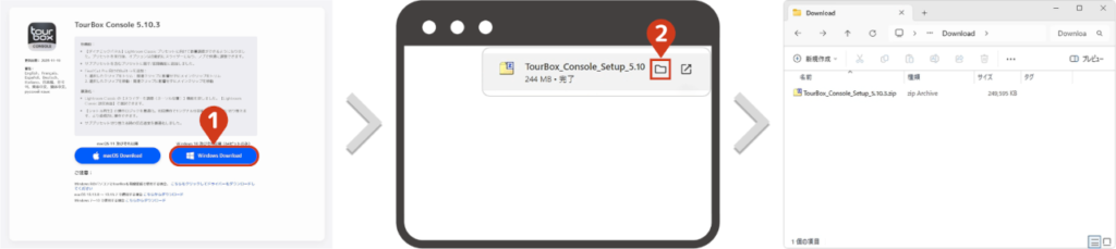 ダウンロードページに移動するので、画面右上の から「ダウンロード」を選択します。