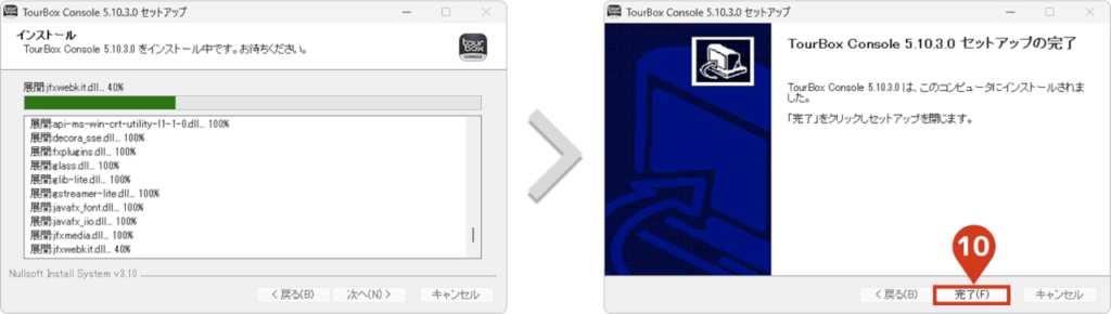 インストールが始まるので数十秒待ち、完了をクリックします。