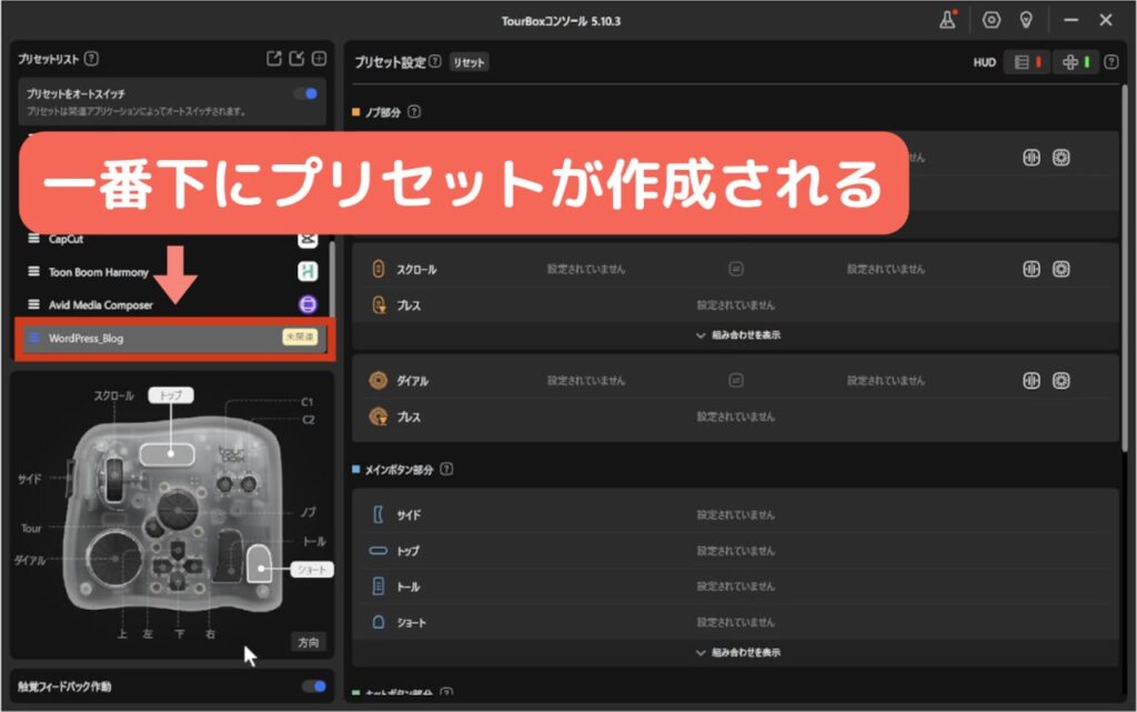 これ以外のアプリで動作させる場合は、以下の方法でプリセットを用意する必要があります。