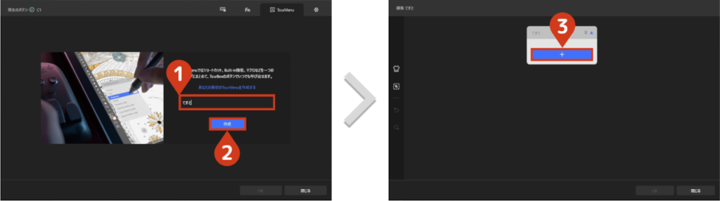 事前に登録した動作の「選択メニュー」を表示します。1ボタンで複数の動作を使い分けたい場合に最適です。まずはメニューの名前を登録します。その後、オリジナルのメニューを作成していきます。