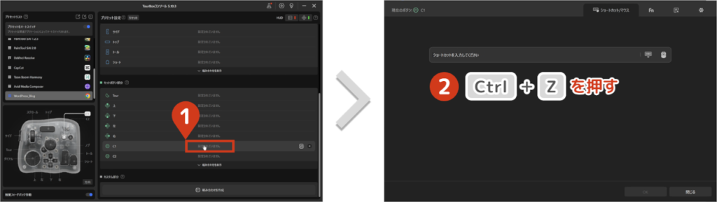 これで登録完了となり、を押すとCtrl+Z(取り消し)が実行されるようになります。