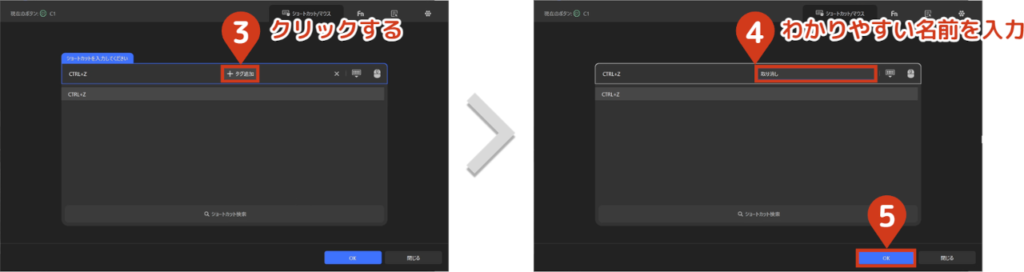 ※例では「取り消し」と命名しています。そのままOKをクリックします。