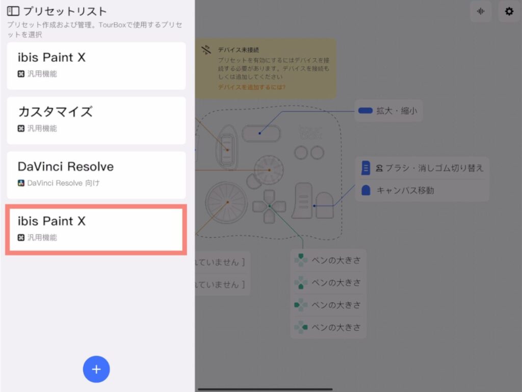 しばらくすると「TourBox Elite Plus」と表示されるので接続をクリックします。