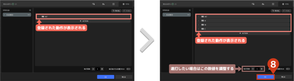 本設定ではキーボード入力だけではなく、様々なアクションを登録できます。