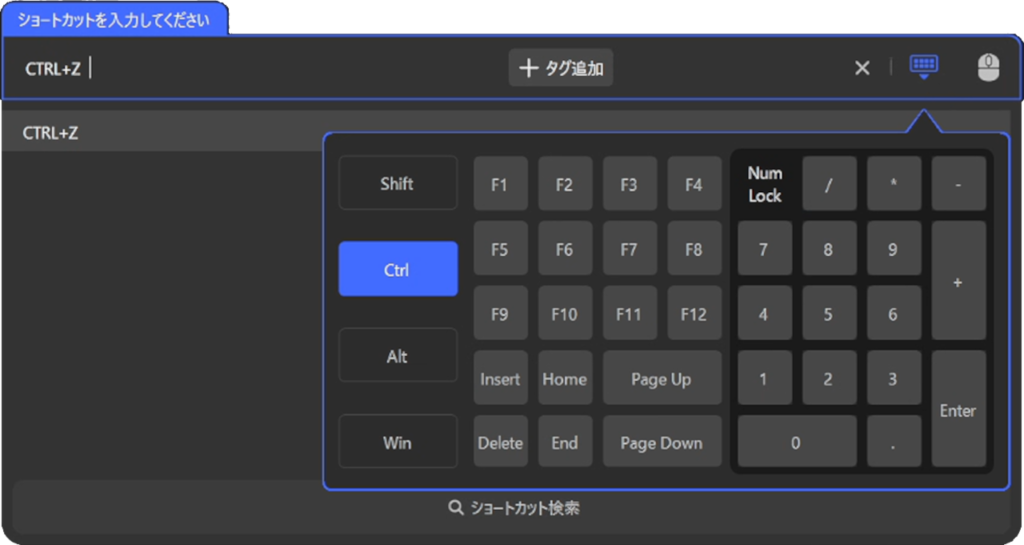 登録しにくいWinや、マウスボタンを組み合わせる場合は、以下の画面から登録してください。