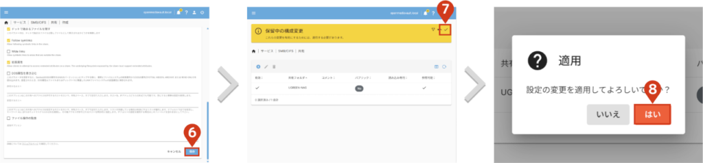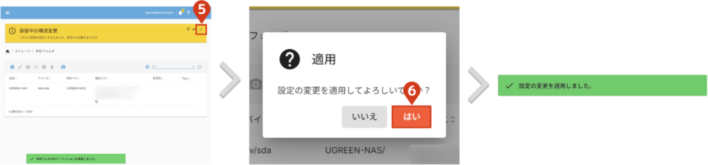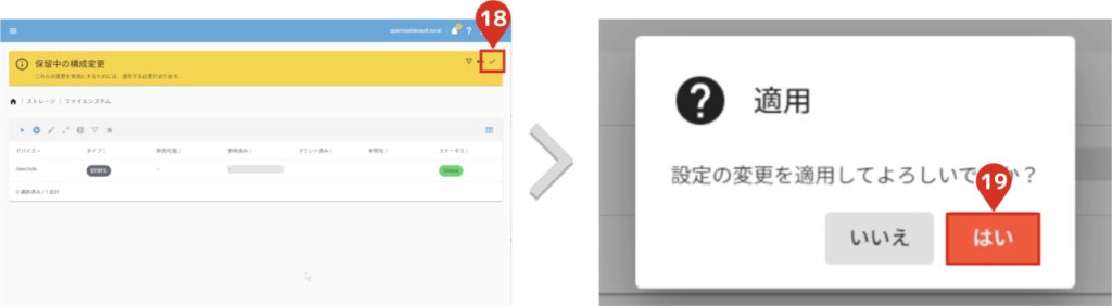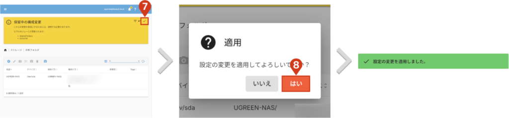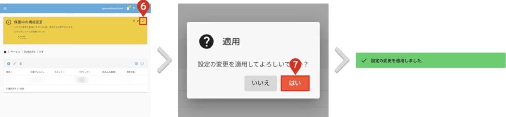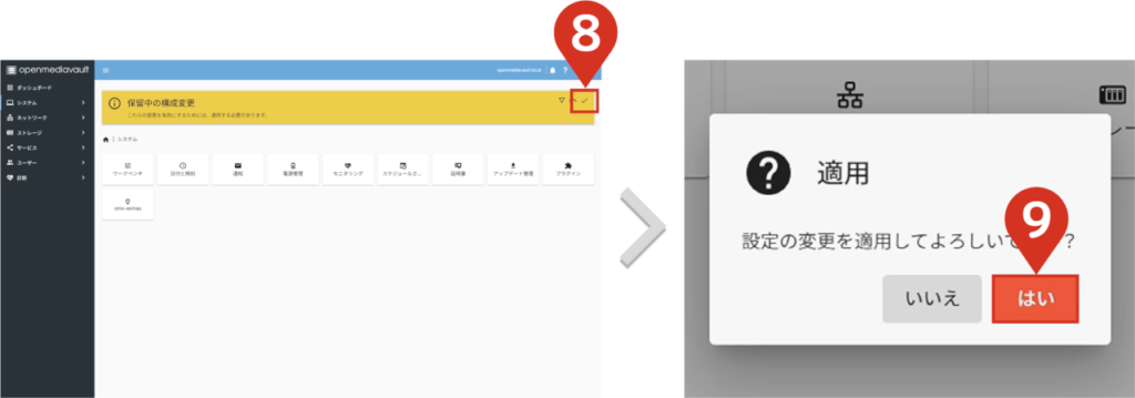 保留中の構成変更のチェックボタンを選択し、適用してください。