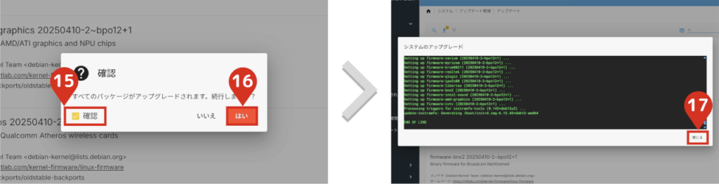 先程のアップグレードで、さらにアップデートが追加されることがあります。再度アップデート画面でチェックしてください。