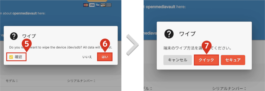残りのHDDも選択して、同じようにワイプを進めてデータを消去します。