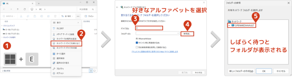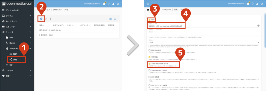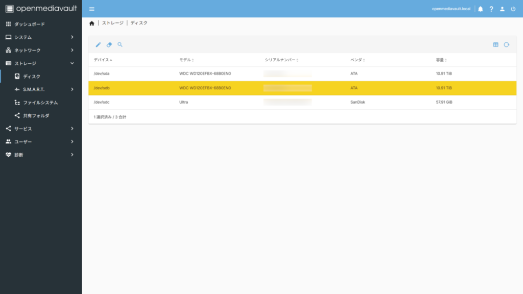 参照をしてしばらくすると、「OPENMEDIAVAULT(ホスト名)」が表示されるので、選択します。