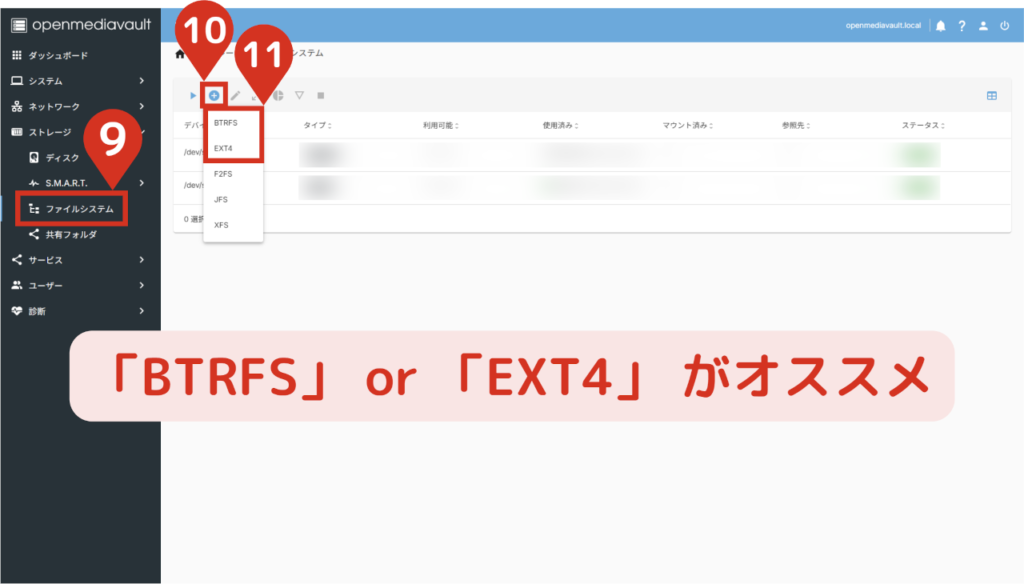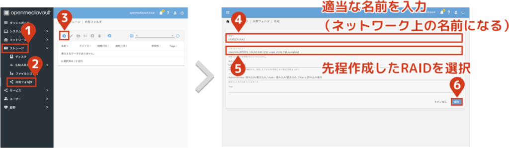 わかりやすい名前を入力後、ファイルシステムを選択してから保存をクリックしてください。