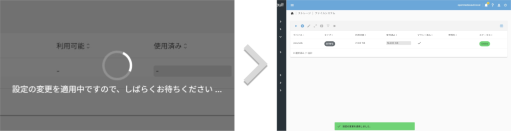 「設定の変更を適用しました」の表示とともに、RAID構築が完了します。